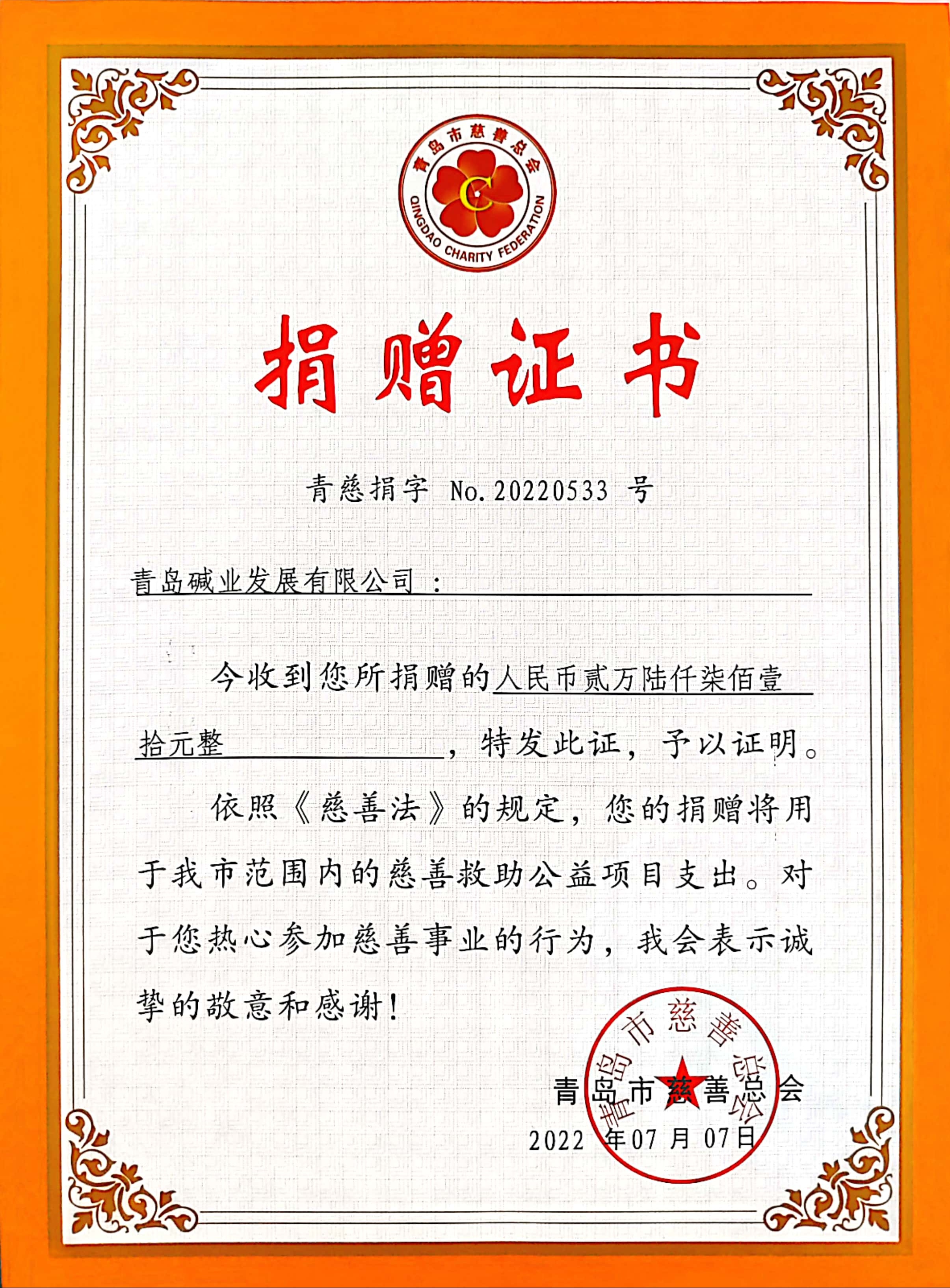 青島堿業(yè)開(kāi)展“慈善一(yī)日(rì)捐”活動